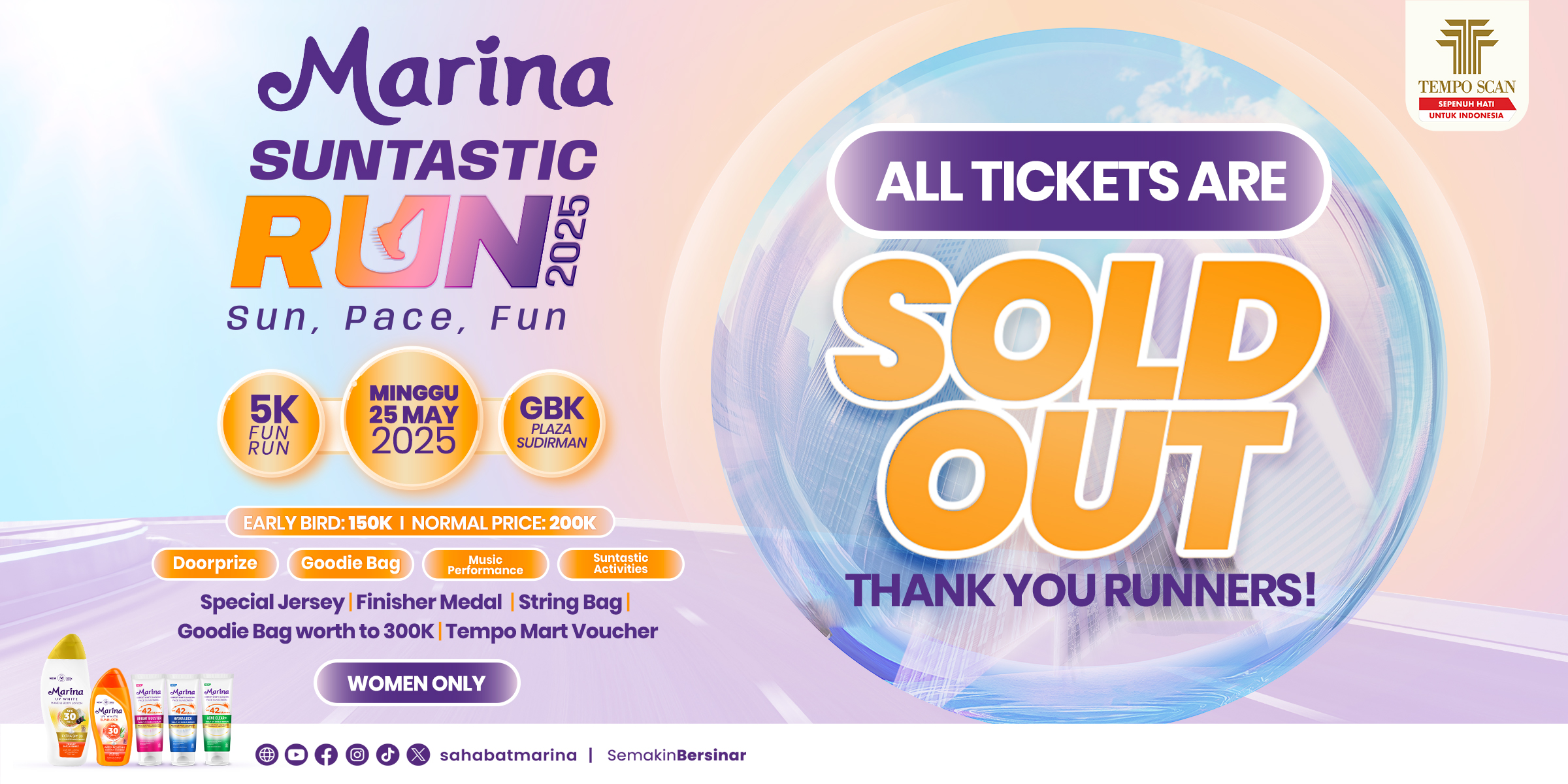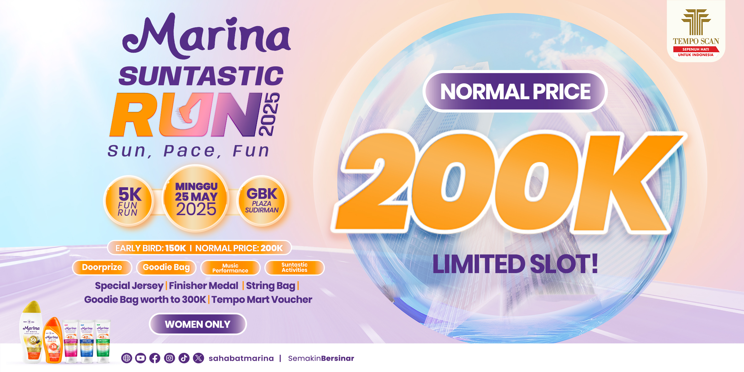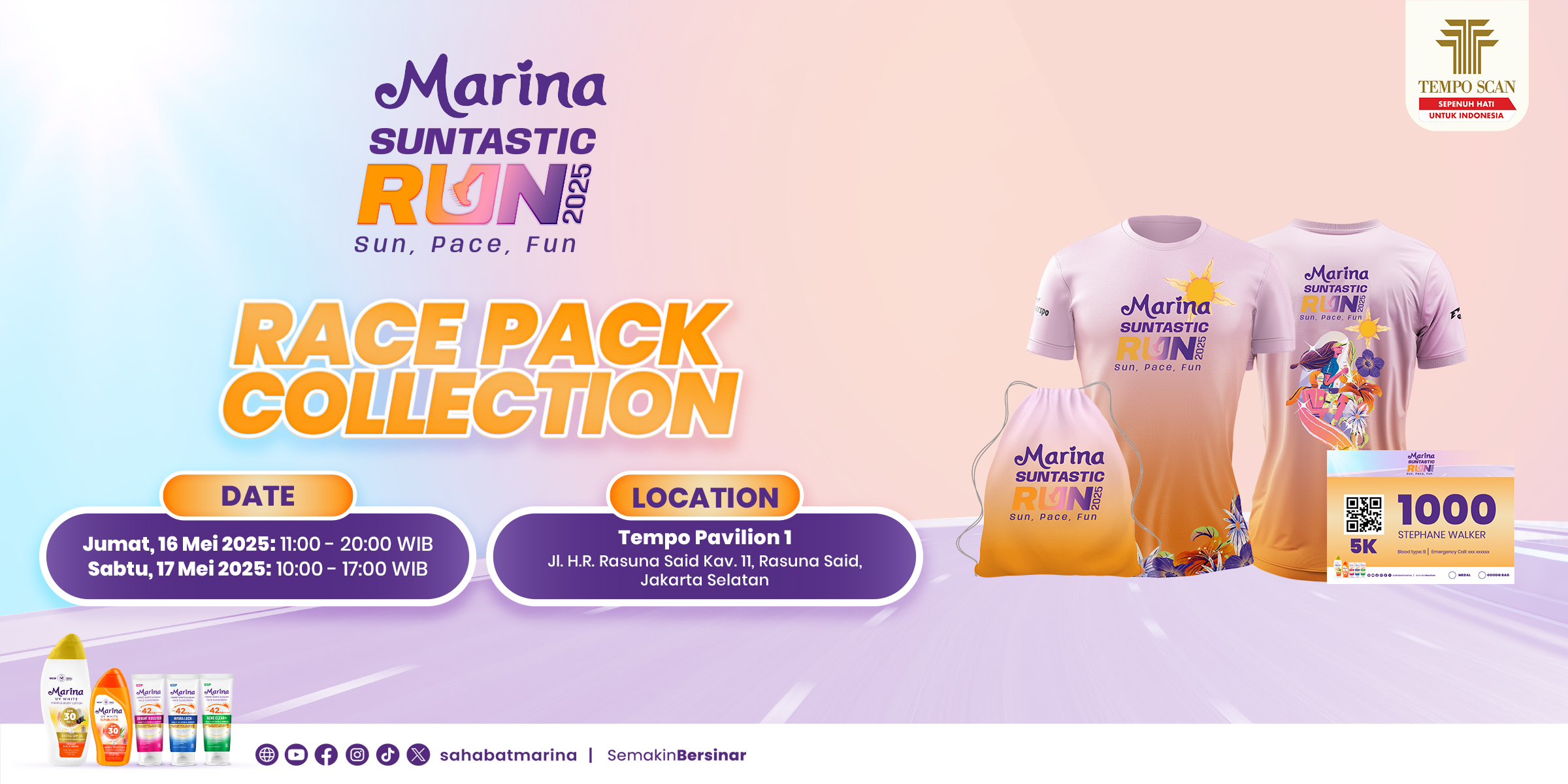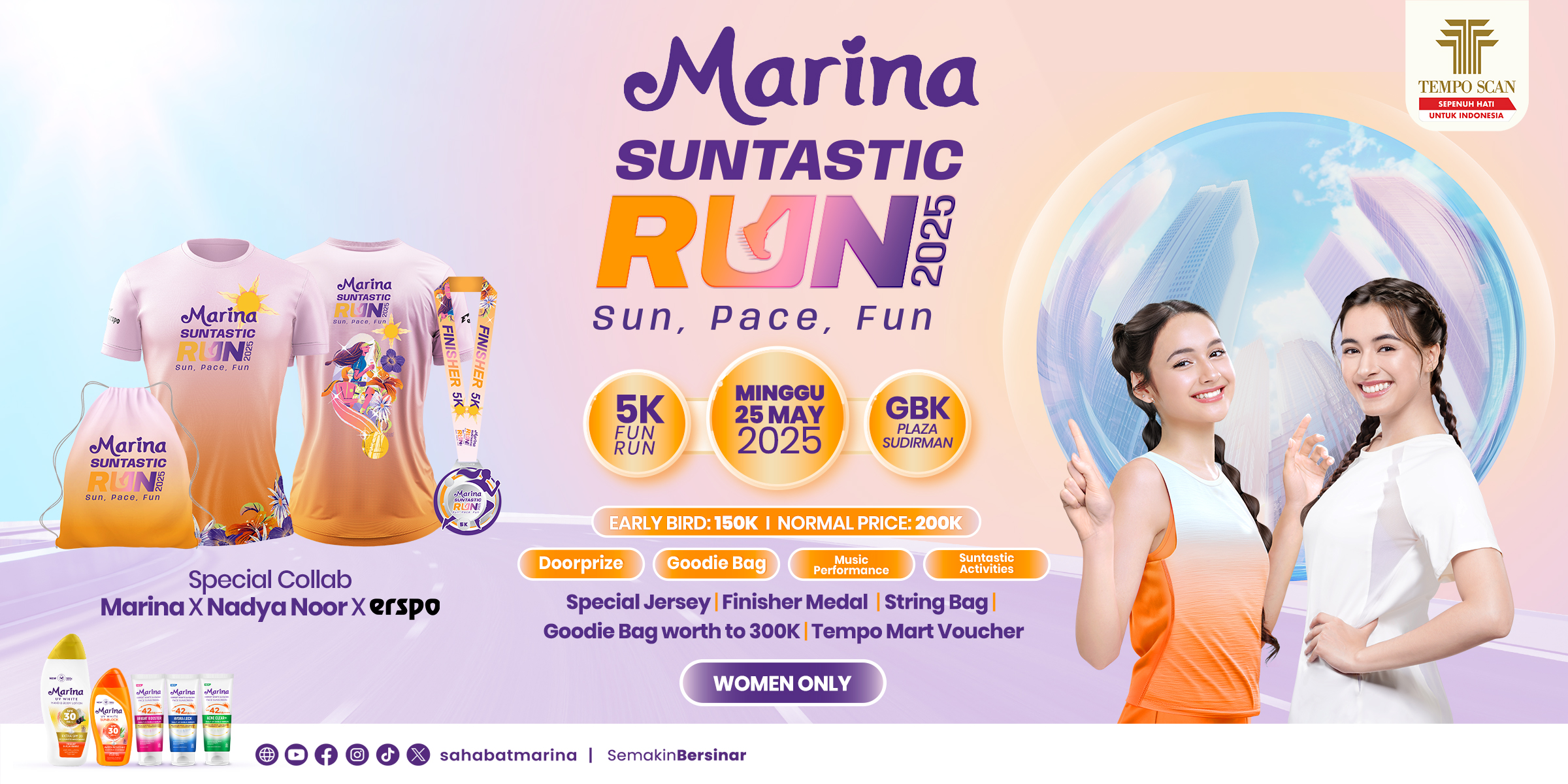 Marina mempersembahkan Marina Suntastic Run 2025 merupakan event Fun Run dengan jarak 5K bagi perempuan Indonesia. Event Marina Suntastic Run ini tidak hanya menjadi simbol semangat hidup aktif dan sehat, tetapi juga edukasi pentingnya perlindungan kulit dari paparan sinar matahari dan mencegah resiko kanker kulit dalam jangka panjang.